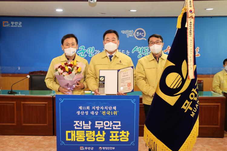 Á¦11ȸ »ý»ê¼º ´ë»ó Æò°¡´Â Àü±¹ 171°³ ÁöÀÚü°¡ ÀÀ¸ðÇØ 15°³ ±â°üÀÌ ¿ì¼ö±â°üÀ¸·Î ¼±Á¤µÆÀ¸¸ç ¹«¾È±ºÀÌ ½Ã±º±¸ Á¾ÇÕ Àü±¹ 1À§ÀÇ ÃÖ°í Á¡¼ö¸¦ ¹Þ¾Æ ´ëÅë·É ǥâÀ» ¼ö»óÇß´Ù.