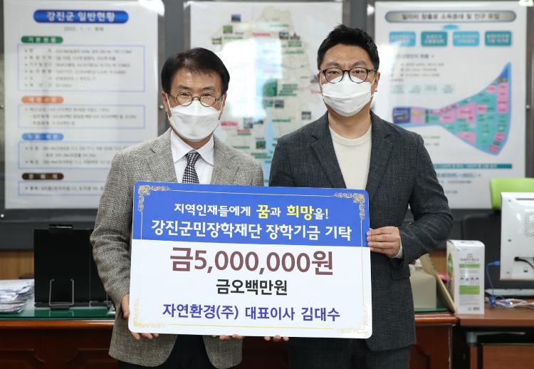 ÀÚ¿¬È¯°æ¢ß´Â ¼ºÀü¸é¿¡ À§Ä¡ÇÑ °Ç¼³Æó±â¹° Áß°£ 󸮾÷ü·Î ±è´ë¼ö ´ëÇ¥´Â ͺ ±èÇâ¿Á Àü ´ëÇ¥ÀÇ ¶æÀ» À̾î¹Þ¾Æ 2016³âºÎÅÍ ¸Å³â 500¸¸ ¿øÀÇ ÀåÇбÝÀ» °Áø±º¹ÎÀåÇÐÀç´Ü¿¡ ±âÅ¹ÇØ¿À°í ÀÖ´Ù. 2005³âºÎÅÍ ÇöÀç±îÁö ±âºÎÇÑ ÀåÇбÝÀº 9,000¸¸ ¿ø¿¡ À̸¥´Ù.
