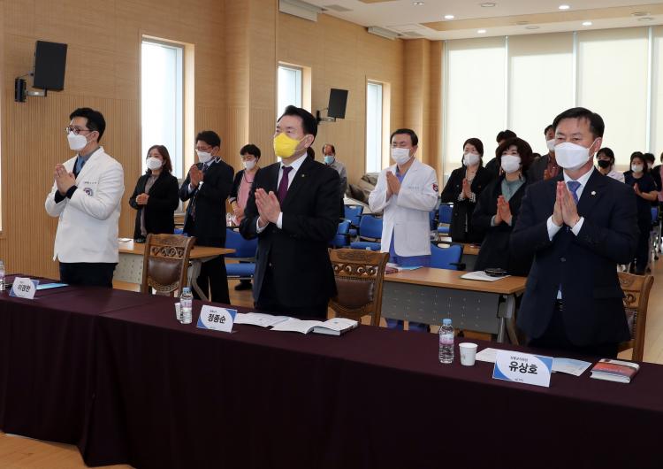 ÀÌÁ¤ÇÑ º´¿øÀåÀº ÃëÀӻ縦 ÅëÇØ ¡°°í°´ÀÌ °¨µ¿ÇÒ ¼ö ÀÖ´Â º´¿ø ¿î¿µÀº ¹°·Ð, ÀåÈïÅëÇÕÀǷẴ¿øÀÌ ÅëÇÕÀÇ·áÀÇ ¼±µµ¸ðµ¨·Î Á¤ÂøµÉ ¼ö ÀÖµµ·Ï ³ë·ÂÇϰڴÙ. ÀåÈﱺÀÌ ÅëÇÕÀÇÇÐÀÇ ¸ÞÄ«°¡ µÇµµ·Ï ÃÖ¼±À» ´ÙÇϰڴÙ.¡±°í ¸»Çß´Ù.