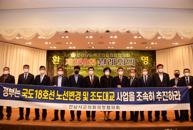 Àü³² ½Ã±ºÀÇȸ ÀÇÀåÇùÀÇȸ´Â À̳¯ ´ã¾ç±ºÀÇȸ¿¡¼ ȸÀǸ¦ ¿¾î ¹Ú±Ý·Ê Áøµµ±ºÀÇȸ ÀÇÀåÀÌ Á¦¾ÈÇÑ ¡®±¹µµ 18È£¼± ³ë¼± º¯°æ ¹× Á¶µµ´ë±³ °Ç¼³ °ÇÀǹ®¡¯À» äÅÃÇß´Ù.