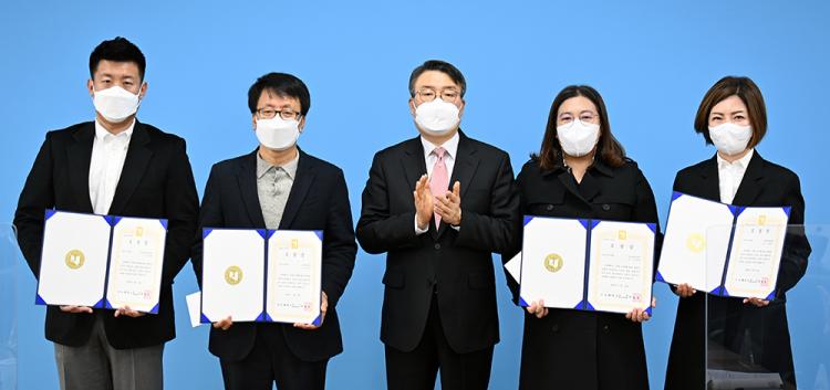 Äڷγª19 È®»ê ¹æÁö¸¦ À§ÇØ À̳¯ ½Ã»ó½Ä¿¡´Â »çȸ°æ¿µ´ëÇÐÀ» ´ëÇ¥ÇØ ¹Ú¿¬¿Á ±³¼ö(Ç×°ø¼ºñ½ºÇаú), º¸°Ç°úÇдëÇÐ ±è¼±Èñ ±³¼ö(°£È£Çаú), AIÀ¶ÇÕ´ëÇÐ À±Àθ𠱳¼ö(¹Ì·¡ÀÚµ¿Â÷°øÇкÎ), ¹®È¿¹¼úüÀ°´ëÇÐ ±Ç¼øÀç ±³¼ö(űǵµ°æÈ£Çаú)°¡ °¢°¢ ´Ü°ú´ëÇÐ ´ëÇ¥·Î ¼ö»óÇß´Ù.