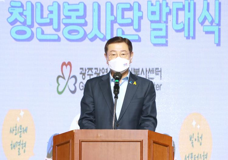 À̿뼷 ½ÃÀåÀº ¡°³ª´®°ú ¿¬´ëÀÇ ±¤ÁÖ°øµ¿Ã¼ ¼±µÎ¿¡¼ ¹«ÇÑÇÑ Ã¢ÀǷ°ú ¼±µµÇÏ´Â »ç¸íÀǽÄ, µµÀüÁ¤½ÅÀ» °¡Áø ¿ì¸® û³âµéÀÌ Àû±Ø Ȱµ¿À» ÆîÄ¡¸ç ºûÀ» ¹ßÇϰí ÀÖ´Ù¡±¸ç ¡°¿ì¸® û³âµéÀÌ ³ª´®°ú ¿¬´ëÀÇ ±¤ÁÖÁ¤½ÅÀ» ǰÀº ±Û·Î¹ú ¸®´õ·Î ¼¼°è¸¦, ¹Ì·¡¸¦ À̲ø¾î³ª°¡±æ ±â´ëÇÑ´Ù¡±°í ¸»Çß´Ù.