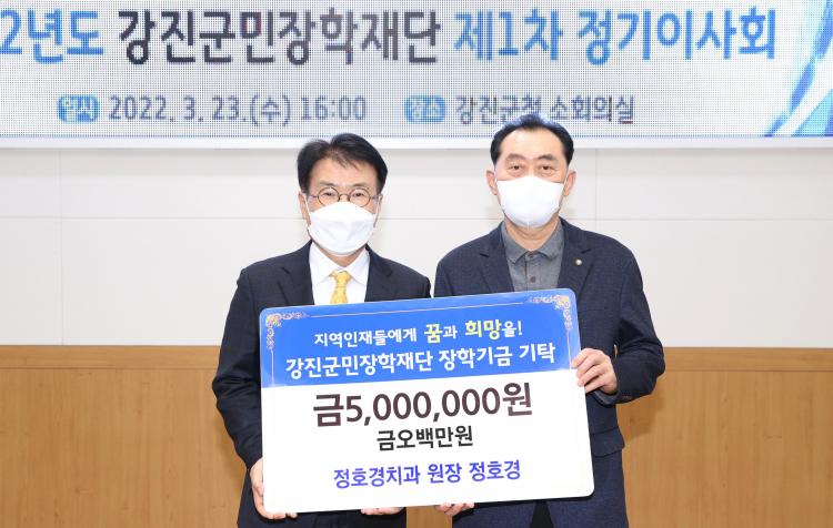 ¶Ç, À̳¯ Á¤È£°æ À̻簡 500¸¸ ¿øÀÇ ÀåÇбÝÀ» ±âŹÇß´Ù. Á¤È£°æ ÀÌ»ç´Â ¡°°Áø±º¹ÎÀåÇÐÀç´ÜÀÇ ÀÓ¿øÀ¸·Î¼ ¾ÕÀ¸·Îµµ °Áø±ºÀÇ ±³À°¹ßÀü°ú ÀÎÀçÀ°¼º¿¡ ÀÏÁ¶Çϰڴ١±°í ¸»Çß´Ù.