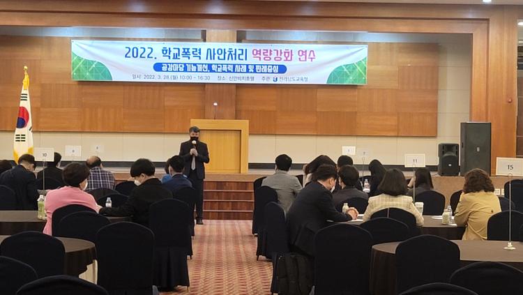 ¿ÀÀü¿¡´Â Çб³Æø·Â ¾÷¹« ´ã´ã ÀåÇлç, ÁÖ¹«°üÀ» ´ë»óÀ¸·Î ¡®°ø°¨¸¶´ç¡¯ ±â´É °³¼± ¿¬¼ö¸¦ ½Ç½ÃÇÑ µ¥ ÀÌ¾î ¿ÀÈÄ¿¡´Â 22°³ ±³À°Áö¿øÃ» Çб³Æø·Â´ëÃ¥½ÉÀÇÀ§¿øÈ¸ ¼ÒÀ§¿øÀå ¿¬¼ö°¡ ÁøÇàµÆ´Ù.