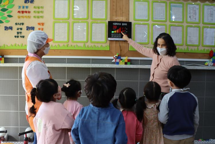 ¡®½ÄÁßµ¶Áö¼ö ¾Ë¸®¹Ì Àü±¤ÆÇ¡¯Àº ±Þ½Ä¼Ò ³» ¿Âµµ¿Í ½Àµµ¸¦ ½Ç½Ã°£À¸·Î ÃøÁ¤ÇØ °ü½É(³ì»ö), ÁÖÀÇ(³ë¶û), °æ°í(ÁÖȲ), À§Çè(»¡°) ´Ü°è·Î ½ÄÁßµ¶Áö¼ö¸¦ Ç¥±âÇÑ´Ù.