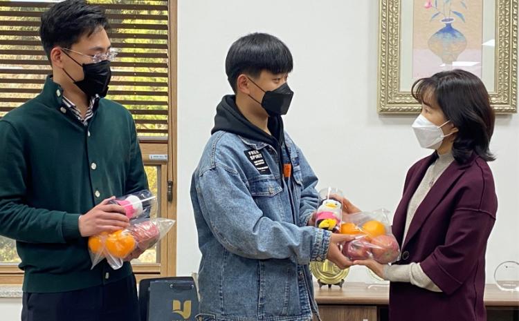 À̹ø Çà»ç¿¡¼´Â Äڷγª19 È®»êÀ¸·Î ºÒ¾È°¨À» ´À³¤ 2022³â 1Çб⠽š¤ÆíÀÔ À¯ÇлýµéÀ» ´ë»óÀ¸·Î È£´öÀÌ ÀÎÇü°ú °úÀÏ µî ÀÔÇÐ ¼±¹° ¹× »óºñ¾àÀ» Àü´ÞÇß´Ù.