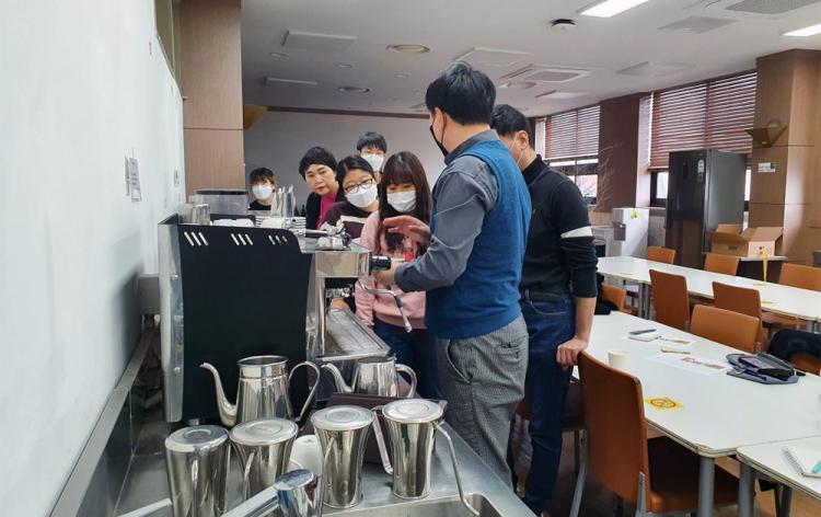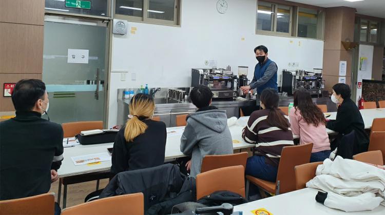 À̹ø±³À°¿¡¼ ±è ±³¼ö´Â Ä¿ÇǺ£¸®¿¡ÀÌ¼Ç À½·á ¹× »ý°úÀÏ Á꽺, non coffee·ù ¹× µðÀúÆ® ½Ç½À±³À°À» ÁøÇàÇØ È£ÆòÀ» ¹Þ¾Ò´Ù.