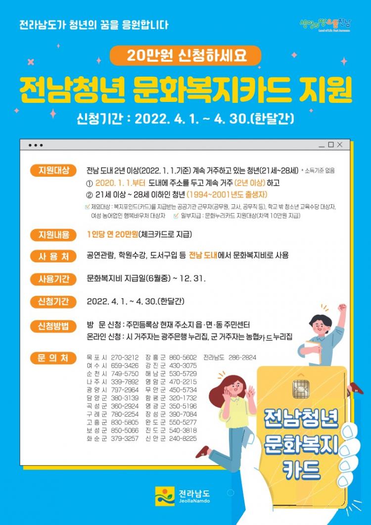 ¿ÃÇØ ÃÖÃÊ·Î ½ÃÇàÇϴ¡®Àü³² û³â ¹®Èº¹ÁöÄ«µå¡¯ Áö¿ø»ç¾÷Àº û³âÃþ¿¡°Ô ¹®È»ýȰ ÇâÀ¯ ¹× ÀÚ±â°è¹ß ±âȸ¸¦ Á¦°øÇÔÀ¸·Î½á û³âµéÀÇ Áö¿ª Á¤ÂøÀ» À¯µµÇÏ´Â »ç¾÷ÀÌ´Ù.