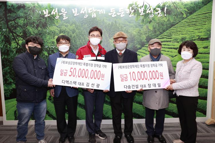 º¸¼º±ºÀåÇÐÀç´Ü¿¡ ±âʵµ À̾îÁö°í ÀÖ´Ù. º¸¼º Ãâ½Å ±â¾÷ÀÎÀÎ ±¤ÁÖ ¼ÒÀç ±â¾÷ ´ë¼º ±è¼±±¤ ´ëÇ¥°¡ ¿Àõ¸¸¿ø(¸Å³â ¿À¹é¸¸¿ø¾¿ 10³â ±âŹ)À» ±¤ÁÖ ¼ÒÀç ±â¾÷ ´Ù¼Û°Ç¼³ Àå´ëÀÏ ´ëÇ¥°¡ õ¸¸¿øÀ» ¿¬ÀÌ¾î ±âŹÇϸç Áö¿ª»çȸ¿¡ Å« °¨µ¿À» ¼±»çÇϰí ÀÖ´Ù.