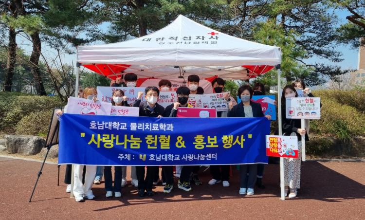 ´ëÇÑÀû½ÊÀÚ»ç¿Í È£³²´ëÇб³ »ç¶û³ª´®¼¾ÅÍ(¼¾ÅÍÀå Áø°æ¹Ì)°¡ ¿¬°èÇØ È£³²´ëÇÐ Á¤¹® ¿· ÀÚÀ²ÁÖÇà½ÃÇèÀå¿¡¼ ½Ç½ÃÇÑ À̹ø ÇåÇ÷ Ä·ÆäÀο¡´Â ÀçÇлý°ú ±³Á÷¿øµéÀÌ Âü¿©ÇÏ¿´À¸¸ç ¹°¸®Ä¡·áÇаú Çлýµé 30¸í¿©ÀÌ ÇåÇ÷¿¡ Âü¿©Çϰí 10¸íÀÌ ¼±¿îÁö±¸ ÀÏ´ë¿¡¼ ÇåÇ÷ È«º¸È°µ¿À» ½Ç½ÃÇß´Ù.