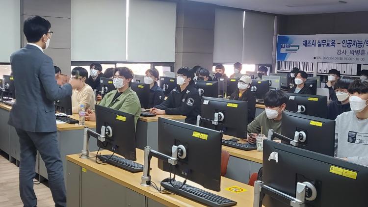 ¶Ç Á¦Á¶AI ½Ç¹«±³À°À» ¹Þ°í ÀÖ´Â Çлýµé¿¡°Ô ´Ù°¡¿À´Â ¹Ì·¡¸¦ Àß ÁغñÇÏ¿© Ãë¾÷±îÁö ¼º°øÇϱ⸦ ¹Ù¶õ´Ù°í ´çºÎÇϰí, °ÀǸ¦ ¸¶Ä£ ÈÄ¿¡´Â ÇлýµéÀÌ ±Ã±ÝÇÑ »çÇ׿¡ Áú¹®ÇÏ°í ´äº¯ÇÏ´Â ½Ã°£À» °¡Á³´Ù.