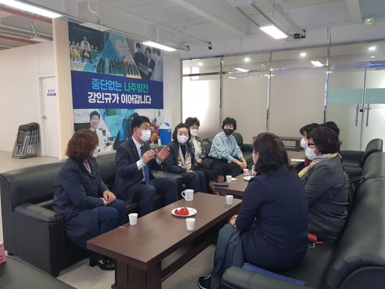 ¾îÁ¦ 4ÀÏ Ã⸶¸¦ ¼±¾ðÇÑ ¹Î¼±6±â¿Í 7±â ³ªÁÖ½ÃÀåÀÎ °ÀÎ±Ô È帴 °¡Àå ¸ÕÀú ¿©¼º´Üü¿ÍÀÇ °£´ãȸ·Î °ø½Ä ÀÏÁ¤À¸·Î ½ÃÀÛÇß´Ù. ¿À´Ã 5ÀÏ ³ªÁֽà Áß¾Óµ¿¿¡ À§Ä¡ÇÑ ÀÚ½ÅÀÇ ¼±°Å»ç¹«¼Ò¿¡¼ ¿©¼º´Üü¿¬ÇÕ °¿¬¼÷ ȸÀåÀ» ºñ·ÔÇÑ È¸¿øµé°ú °£´ãȸ¸¦ °¡Áö°í ¡®ÀÚ³à ¾çÀ° ºÎ´ã °æ°¨ °ø¾à¡¯À» ¹ßÇ¥ÇÏ¿´´Ù.