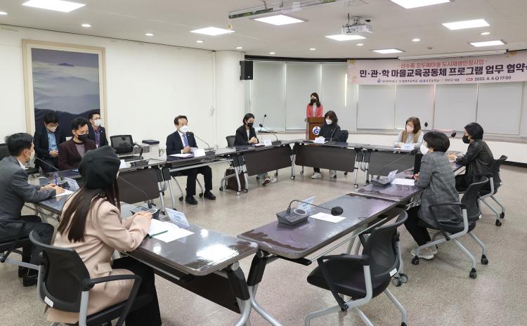 »ê¼ö2µ¿ µµ½ÃÀç»ý ÀÎÁ¤»ç¾÷ Áß Áֹοª·®°È»ç¾÷ ÀÏȯÀÎ ¸¶À»±³À°°øµ¿Ã¼ ÇÁ·Î±×·¥ ¿î¿µ¿¡ °üÇÑ Çù·Âü°è¸¦ ±¸ÃàÇϰíÀÚ µ¿±¸´Â À²°î¡¤Àå¿øÃʱ³ 1~6Çгâ 40°³ ¹Ý 700¿© ¸íÀ» ´ë»óÀ¸·Î ±³°ú °úÁ¤°ú ¿¬°èÇÑ ¡®Áö¿ª Ư¼º¿¡ ¸ÂÃá ½Ç½À À§ÁÖ ±³À°ÇÁ·Î±×·¥¡¯(»ýű³À°¡¤ÀÚ¿¬³îÀÌ È°µ¿¡¤¸¶À»È¯°æ±³À° µî)À» ¿î¿µÇÒ °èȹÀÌ´Ù.