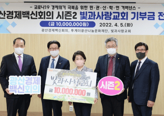 ±¤»ê±¸ ºû°ú»ç¶û±³È¸´Â 5ÀÏ ¿ÀÀü ±¤»ê±¸Ã»¿¡¼ Àü´Þ½ÄÀ» °®°í ±¤»ê°æÁ¦¹é½ÅȸÀÇÀÇ Áö¿ª°æÁ¦ Ȱ¼ºÈ »ç¾÷¿¡ ½á´Þ¶ó¸ç Åõ°Ô´õ±¤»ê ³ª´®¹®ÈÀç´Ü¿¡ 1000¸¸ ¿øÀ» ±âºÎÇß´Ù.