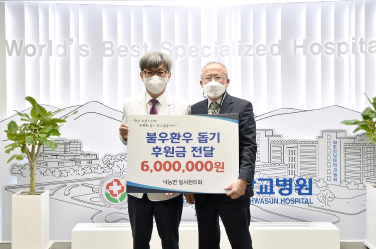 Àü³²Áö¿ª ³«³óÀεéÀÇ Ä£¸ñ¸ðÀÓÀÎ ³«³ó¿¬ÇÕȸ ³» ¡®ÀÏ»çõ¸®È¸¡¯(ȸÀå ¼Á¤¹ü¡¤Á¦ÀϸñÀå ´ëÇ¥)´Â ÃÖ±Ù(4¿ù1ÀÏ) ȼøÀü³²´ëÇб³º´¿øÀ» ¹æ¹®, ÈÄ¿ø±Ý 600¸¸¿øÀ» Àü´ÞÇß´Ù.