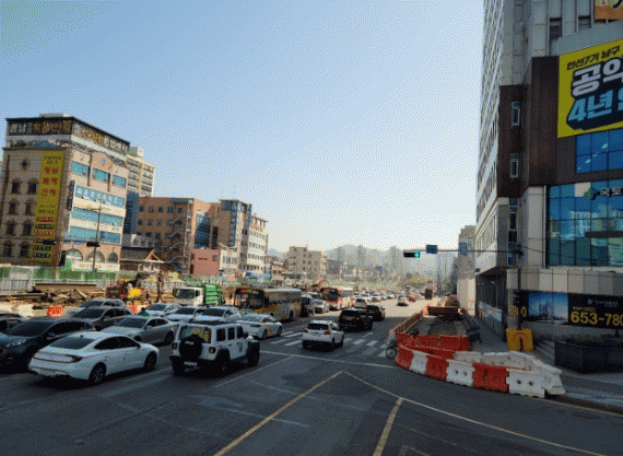 À̹ø ±³ÅëÀüȯ ±¸°£Àº ¹é¿î±¤ÀåºÎÅÍ ³²±¤ÁÖ³óÇù±îÁö ¾à 550mÀ̸ç, °ø»ç´Â 10ÀϺÎÅÍ ÀÌÆ²°£ ÁøÇàµÈ´Ù. Â÷·Î¼ö´Â ÇöÇà°ú °°ÀÌ 7Â÷·Î°¡ À¯ÁöµÇÁö¸¸, ³²±¸Ã» ¾Õ °¡½Ã¼³ °ø»ç¸¦ À§ÇØ °ø»ç Á¡À¯±¸°£ÀÌ ³Ð¾îÁö°í ÀÌ·Î ÀÎÇØ Áß¾Ó¼±ÀÌ Çª¸¥±æ ¹æÇâÀ¸·Î 3Â÷·Î À̵¿ÇÑ´Ù.