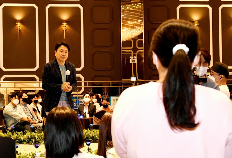 ÅäÅ©¼î´Â À̳¯ ¿ÀÈÄ 2½Ã ±¤ÁÖ ¼±¸ °ÃßÄ·ÇÁ(°æ¼±¼±°Å´ëÃ¥º»ºÎ »ç¹«½Ç)¿¡¼ ¿·ÈÀ¸¸ç ´ëÇлý°ú Àü¾÷ÁÖºÎ, û³ââ¾÷°¡¿Í ¹®È¿¹¼ú°è Á¾»çÀÚ µî °¢°è°¢Ãþ 250¿©¸íÀÌ Âü¿©Çß´Ù. ÅäÅ©¼î°¡ ³¡³ µÚ¿¡´Â ¡®Ã»³â 9,999¸í ÁöÁö¼±¾ð¡¯µµ ÁøÇàµÆ´Ù.