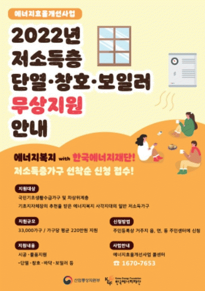 ¿¡³ÊÁö Ãë¾à°èÃþ °¡±¸¸¦ ´ë»óÀ¸·Î ´Ü¿¡¤Ã¢È£¡¤¹Ù´Ú½Ã°ø, º¸ÀÏ·¯ ±³Ã¼ ¹× ¼±Ç³±â Áö¿ø µî ¿¡³ÊÁö »ç¿ë ȯ°æ °³¼±°ú ºñ¿ë Àý°¨À» Áö¿øÇÏ´Â ¿¡³ÊÁöº¹Áö»ç¾÷ÀÇ ÀÏȯÀÌ´Ù.