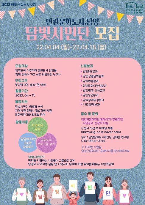 ¡®´ãºû½Ã¹Î´Ü¡¯Àº ´ã¾çÀ» »ç¶ûÇÏ´Â »ç¶÷µéÀÌ ¸ð¿© Áö¿ªÀÚ¿ø Ȱµ¿ ¹× Áö¿ª»çȸ ¹®Á¦¿¡ µû¸¥ ÅäÀǸ¦ ÁøÇàÇÏ´Â ½Ã¹ÎÀ§¿øÈ¸´Ù.