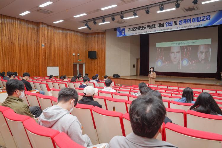 6ÀÏ Á¶¼±´ëÇб³ ¼¼®È¦ 4Ãþ ´ëÈ£Àü±âȦ¿¡¼ ¿¸° ±³À°Àº ÇлýµéÀÌ ´ëÇÐ »ýȰ Áß ¸¶ÁÖÇÒ ¼ö ÀÖ´Â ÀαÇÄ§ÇØ¿Í ¼ºÆø·Â »óȲÀ» ÁÖüÀûÀ¸·Î ¿¹¹æÇÒ ¼ö ÀÖ´Â ½Ã°£À¸·Î µå¶ó¸¶, ±¤°í¸¦ ÅëÇÑ ´Ù¾çÇÑ »ç·Ê °øÀ¯ µîÀÌ ¸¶·ÃµÆ´Ù. À̾î ÀαÇÄ§ÇØ ¹× ¼ºÇÇÇØ ½Å°í ÀýÂ÷ ¹× ¼¾ÅÍ ±â´É¿¡ ´ëÇØ ¾È³»ÇÏ´Â ½Ã°£À» °¡Á³´Ù.