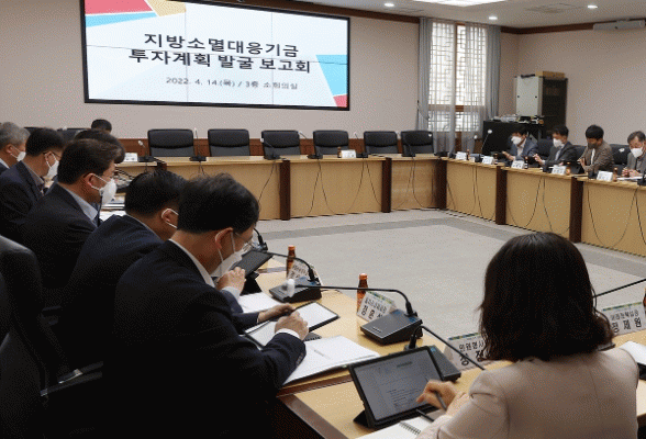 ¸ÕÀú Áö¹æ¼Ò¸ê´ëÀÀ±â±Ý »ç¾÷ ¹ß±¼ º¸°íȸ´Â ±â±Ý ÅõÀÚ°èȹ ¼ö¸³À» À§ÇØ ¹ß±¼µÈ ´ë»ó »ç¾÷¿¡ ´ëÇÑ º¸°í¿Í ¿¬°è »ç¾÷ ¹× ½Å±Ô »ç¾÷ ¹ß±¼, »ç¾÷ ¹ßÀü ¹æÇâ µîÀ» ³íÀÇÇß´Ù.