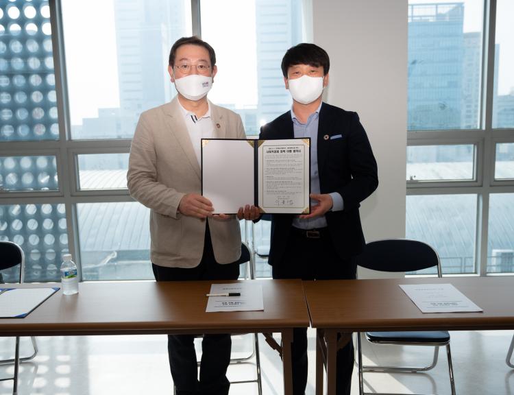 À̳¯ Çù¾à½Ä¿¡¼´Â ÀÌÁ¤ÀÏ »çȸÀû°æÁ¦ÇùÀÇȸÀå, Àå¹Î¿µ ¸¶À»±â¾÷ÇùÀÇȸ ´ëÇ¥ µî 15¸íÀÇ ´ëÇ¥´ÜÀÌ Âü¼®ÇØ À̿뼷 ¿¹ºñÈĺ¸¿¡°Ô »çȸÀû °æÁ¦ °ø¾àÀ» Á¦¾ÈÇϰí Çù¾à¼¿¡ ¼¸íÇß´Ù.