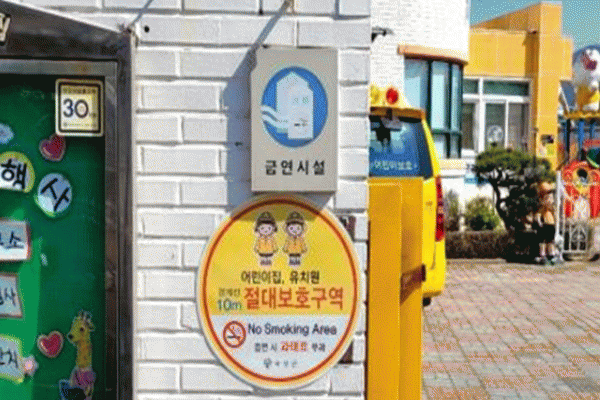 '±³À°È¯°æ º¸È£¿¡ °üÇÑ ¹ý·ü'¿Í '±¹¹Î°Ç°ÁõÁø¹ý'¿¡ µû¸£¸é Çб³¿Í ¾î¸°ÀÌÁýÀÇ ÃâÀÔ¹®À¸·ÎºÎÅÍ Á÷¼± °Å¸® 50m À̳»(À¯Ä¡¿øÀº 10m À̳»)´Â Çб³ Á¤È ±¸¿ª¿¡ ÇØ´çµÈ´Ù. ÀÌ¿¡ µû¶ó °î¼º±ºÀº ±Ý¿¬ ȯ°æ Á¶¼º°ú °£Á¢ Èí¿¬ µî Èí¿¬¿¡ µû¸¥ À¯ÇØ È¯°æ ¿¹¹æÀ» À§ÇØ ±Ý¿¬ ¾È³» Ç¥ÁöÆÇÀ» ¼³Ä¡ÇÏ°Ô µÆ´Ù.