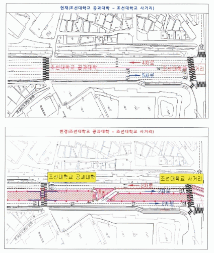 ÀÌ¿¡ µû¶ó Á¶¼±´ë»ç°Å¸®¿¡¼ ³²±¤ÁÖ °í°¡µµ·Î ¹æ¸é Â÷·Î´Â ±âÁ¸ 4°³ Â÷·Î¿¡¼ 2°³ Â÷·Î·Î Ãà¼ÒµÇ°í, Á¶¼±´ëÇб³ °ø°ú´ëÇÐ »ç°Å¸® ºÎ±ÙºÎÅÍ 3°³ Â÷·Î·Î ´Ù½Ã È®´ëµÇ¸ç, 1Â÷·Î ÁÖÇà ½Ã¿¡¸¸ ³²±¤ÁÖ °í°¡µµ·Î¸¦ ÀÌ¿ëÇÒ ¼ö ÀÖ´Ù.