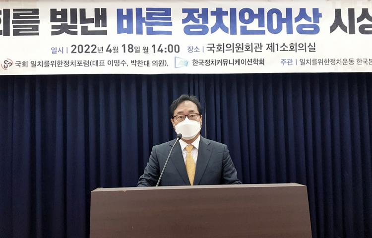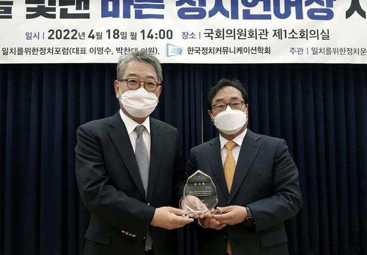 [ÅåÅå´º½º]Çѱ¹Á¤Ä¡Ä¿¹Â´ÏÄÉÀ̼ÇÇÐȸ(ÇÐȸÀå ±è´ö¸ð È£³²´ëÇб³ ´ëÇпøÀå)´Â ±¹È¸ÀÇ¿ø ¿¬±¸´Üü ¡®ÀÏÄ¡¸¦ À§ÇÑ Á¤Ä¡Æ÷·³¡¯°ú °øµ¿À¸·Î 4¿ù 18ÀÏ ¿ÀÈÄ 2½Ã ±¹È¸ÀÇ¿øÈ¸°ü Á¦1¼ÒȸÀǽǿ¡¼ ¡®Á¦9ȸ ±¹È¸¸¦ ºû³½ ¹Ù¸¥ Á¤Ä¡¾ð¾î»ó¡¯ ½Ã»ó½ÄÀ» °³ÃÖÇß´Ù.