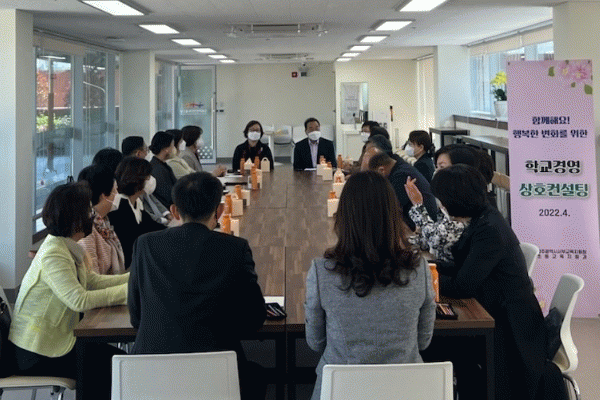 ±¤ÁÖÈÁ¤ÃÊ Àå°æÈñ±³ÀåÀº ¡°À̹ø ÄÁ¼³ÆÃÀº ´Ù¸¥ Çб³¿Í ´Ù¾çÇÑ »ç·Ê¸¦ °øÀ¯ÇØ Á» ´õ ¹ßÀüÀûÀÎ ±³À°°úÁ¤ ¿î¿µ ¹æ¾ÈÀ» °í¹ÎÇØº¸´Â ÀǹÌÀÖ´Â ÀÚ¸®¿´°í ¾ÕÀ¸·Îµµ ÀÚÀ²ÀûÀÎ ±Ç¿ªº° »óÈ£ÄÁ¼³ÆÃÀÌ Áö¼ÓµÆÀ¸¸é ÁÁ°Ú´Ù¡±¸ç ¡°Çб³¿¡¼µµ ±¸¼º¿øµé³¢¸® ¸Ó¸®¸¦ ¸Â´ë°í ÇÔ²² °í¹ÎÇÒ ¼ö ÀÖ´Â ¼ÒÅëÀÇ ÀÚ¸®¸¦ ÀÚÁÖ ¸¶·ÃÇØ ÇູÇÑ Çб³¸¦ ¸¸µé¾î ³ª°¡°Ú´Ù¡±°í ¸»Çß´Ù.