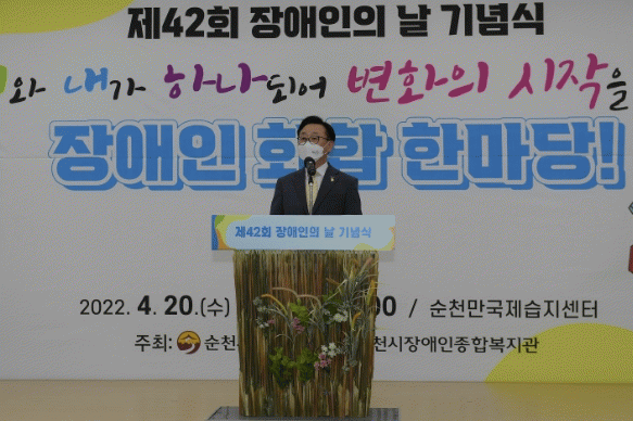 ¼ÕÁ¡½Ä ¼øÃµÀå ±ÇÇÑ´ëÇà(¼øÃµ½Ã ºÎ½ÃÀå)Àº ±â³ä»ç¸¦ ÅëÇØ ¡°¡®ÇÔ²² Çϰí! ÇÔ²² °¡´Â! Â÷º°¾ø´Â ¾î¿ï¸²¡¯À̶õ ºñÀüÀ» ´ã¾Æ Àå¾ÖÀÎ ¿©·¯ºÐ°ú ´õºÒ¾î ÇູÇÑ »îÀ» ¸¸µé±â À§ÇØ ¾ÕÀ¸·Îµµ Àå¾ÖÀÎ ÀÔÀå¿¡¼ ¼¼½ÉÇÏ°Ô Ã¬°Ü ³ª°¡°Ú´Ù.¡±¶ó°í ¸»Çß´Ù.