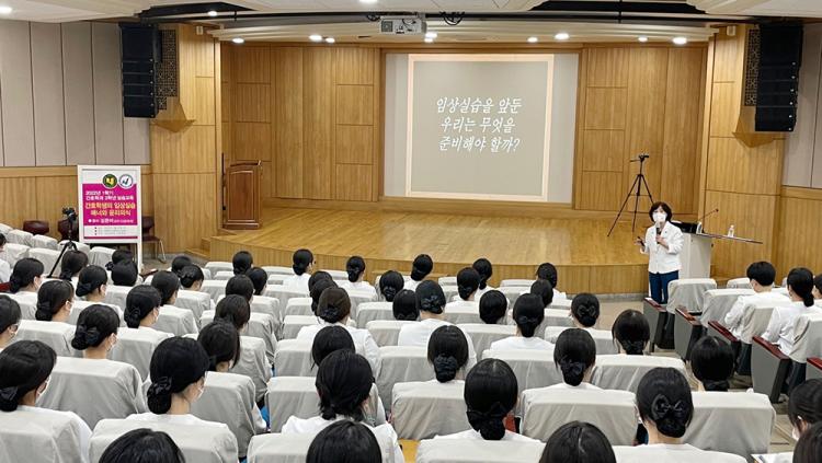 ±èÀº¾Æ ±³¼ö´Â À̳¯ ±³À°¿¡¼ ÀÓ»ó½Ç½ÀÀ» ³ª°¡±â Àü ÀÓ»ó½Ç½À ÇöÀå¿¡¼ ¹ß»ýÇÒ ¼ö ÀÖ´Â ¿©·¯ °¡Áö »ç·Ê¸¦ ÅëÇØ °£È£ÇлýÀÌ °®Ãç¾ß ÇÒ ±âº» ¿¹Àý°ú °£È£À±¸®¿¡ ´ëÇØ °Á¶Çß´Ù.