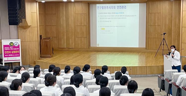 ¹®Á¤Àº ±³¼ö´Â À̹ø ½Ç½À±³À°¿¡¼ ¡®¾ÈÀü°ú °¨¿°°ü¸®¡¯¸¦ ÁÖÁ¦·Î º´¿øÀ̶ó´Â »õ·Î¿î ½Ç½Àȯ°æ¿¡¼ Çлý ÀڽŰú ´ë»óÀÚ¸¦ À§ÇÑ ¾ÈÀü°ú °¨¿°ÀÇ Á߿伺¿¡ ´ëÇØ ±¸Ã¼ÀûÀ¸·Î »ìÆìº¸°í, ½Çõ»çÇ׿¡ ´ëÇØ »ý°¢Çϰí ÁغñÇÏ´Â ½Ã°£À» °¡Á³´Ù.