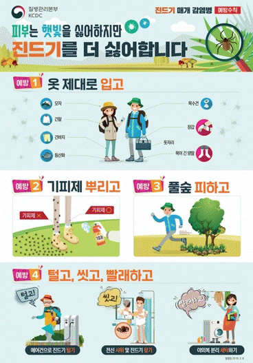 Á¦3±Þ°¨¿°º´ÀÎ ÁßÁõ¿¼ºÇ÷¼ÒÆÇ°¨¼ÒÁõÈıº(SFTS)Àº ¾ß¿Ü Ȱµ¿ ½Ã Áøµå±â¿¡ ¹°¸®Áö ¾Êµµ·Ï ¿¹¹æÇÏ´Â °ÍÀÌ ÃÖ¼±ÀÇ ¹æ¹ýÀÌ¸ç ±ä ¼Ò¸Å, ±ä ¹ÙÁö, ¸ðÀÚ µîÀ¸·Î ¾ÈÀüÇÏ°Ô ¿ÊÀ» °®Ãç ÀÔ¾î¾ß ÇÏ°í ¾ß¿ÜȰµ¿ ÈÄ 2ÁÖ À̳» 38¡ÉÀÌ»óÀÇ °í¿°ú ¿À½É, ±¸Åä, ¼³»ç µî ¼ÒȱâÁõ»óÀÌ ¹ß»ýÇÒ °æ¿ì Áï°¢ ÀÇ·á±â°üÀ» ¹æ¹®ÇÏ´Â °ÍÀÌ Áß¿äÇÏ´Ù.