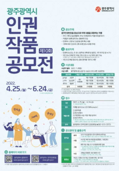 °ø¸ð ÁÖÁ¦´Â ±¤ÁÖÀαÇÇåÀåÀ» Áß½ÉÀ¸·Î ¿ì¸® »çȸ¿Í ÀÏ»ó»ýȰÀÇ ÀαÇÄ§ÇØ¿Í Â÷º°»ç·Ê µ¹¾Æº¸±â, Â÷º° ¾øÀÌ ÇÔ²² »ì¾Æ°¡´Â °øµ¿Ã¼ ¸ð½À, ÀαÇÁ¸Áß ¹®È È®»ê, Á¦12ȸ ¼¼°èÀαǵµ½ÃÆ÷·³ ÁÖÁ¦ÀÎ ±âÈÄÀ§±â¿Í ÀαÇÀÌ¸ç ¡ãÇ¥¾î¡¤¼öÇÊ µî âÀÛ±Û ¡ã±×¸²¡¤»çÁø µî ±×·¡ÇÈ ¡ãµ¿¿µ»ó µî 3°³ ºÎ¹®À» ¸ðÁýÇÑ´Ù.