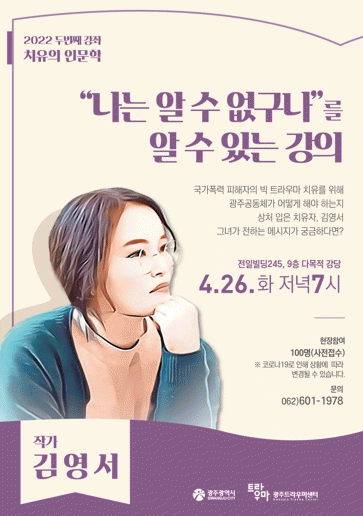 ±¤Áֽô ±¹°¡Æø·Â ÇÇÇØÀÚÀÇ Æ®¶ó¿ì¸¶ Ä¡À¯¿Í ¾ÈÀüÇÑ Ä¡À¯°øµ¿Ã¼ Á¶¼ºÀ» À§ÇØ 2013³âºÎÅÍ ¸Å³â ¡®Ä¡À¯ÀÇ Àι®ÇС¯À» ¿°í ÀÖÀ¸¸ç, ±¤ÁÖÆ®¶ó¿ì¸¶¼¾Å͸¦ ´ëÇ¥ÇÏ´Â ´ëÁß °Á·ΠÀÚ¸®¸Å±èÇϰí ÀÖ´Ù.