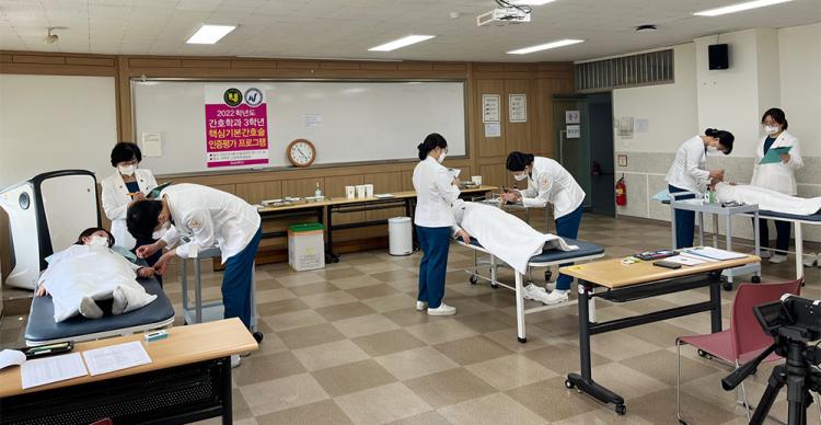 Çٽɰ£È£¼ú ÀÎÁõÆò°¡´Â Çѱ¹°£È£±³À°Æò°¡¿øÀÇ ±âÁØ¿¡ ±Ù°ÅÇÑ Çٽɰ£È£¼ú ¼öÇà´É·ÂÀ» Æò°¡ÇÔÀ¸·Î½á ÇÁ·Î±×·¥ ÇнÀ¼º°ú¸¦ Æò°¡Çϰí, ÀÓ»ó½Ç½À ÇöÀå¿¡¼ ¾ÈÀüÇϰí È¿À²ÀûÀÎ ¾÷¹« ¼öÇà´É·ÂÀ» °ÈÇϱâ À§ÇÑ ÇÁ·Î±×·¥À¸·Î º´¿ø ÀÓ»ó½Ç½ÀÀ» ³ª°¡±â Àü 3Çгâ ÇлýµéÀ» ´ë»óÀ¸·Î ÁøÇàµÆ´Ù.