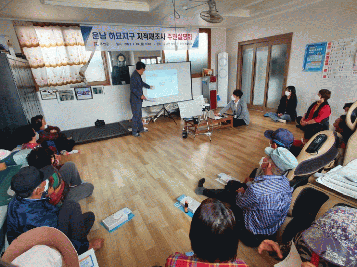 ÃÖ±Ù °³ÃÖµÈ ¿î³² ÇϹ¦Áö±¸, ¸ùź ´Þ»ê1Áö±¸ Áֹμ³¸íȸ¿¡´Â ÅäÁö¼ÒÀ¯ÀÚ¿Í ÁֹΠµî 100¿©¸íÀÌ Âü¼®ÇßÀ¸¸ç, ¼³¸íȸ¿¡¼´Â ÁöÀûÀçÁ¶»ç »ç¾÷ ¸ñÀû°ú Çʿ伺, »ç¾÷°³¿ä¿Í ÃßÁøÀýÂ÷, ÅäÁö¼ÒÀ¯ÀÚÀÇ Âü¿©¿¡ ´ëÇÑ Á߿伺À» ¼³¸íÇϰí ÅäÁö¼ÒÀ¯ÀÚ ÀÇ°ß ¼ö·ÅÀ» ºñ·ÔÇØ ÁöÀûÀçÁ¶»ç Àü¹Ý¿¡ ´ëÇÑ ±Ã±ÝÁõÀ» ÇØ¼ÒÇÏ´Â ½Ã°£À» °¡Á³´Ù.