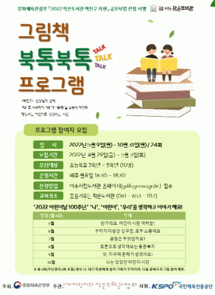 ÀÌ¿¡ µû¶ó ¿À´Â 5¿ùºÎÅÍ 10¿ù±îÁö ÃʵîÇб³ 3Çгâ~5Çгâ(10¸í)À» ´ë»óÀ¸·Î ¡®±×¸²Ã¥ ºÏÅåºÏÅå(Talk)¡¯ ÇÁ·Î±×·¥À» ÁøÇàÇÑ´Ù.