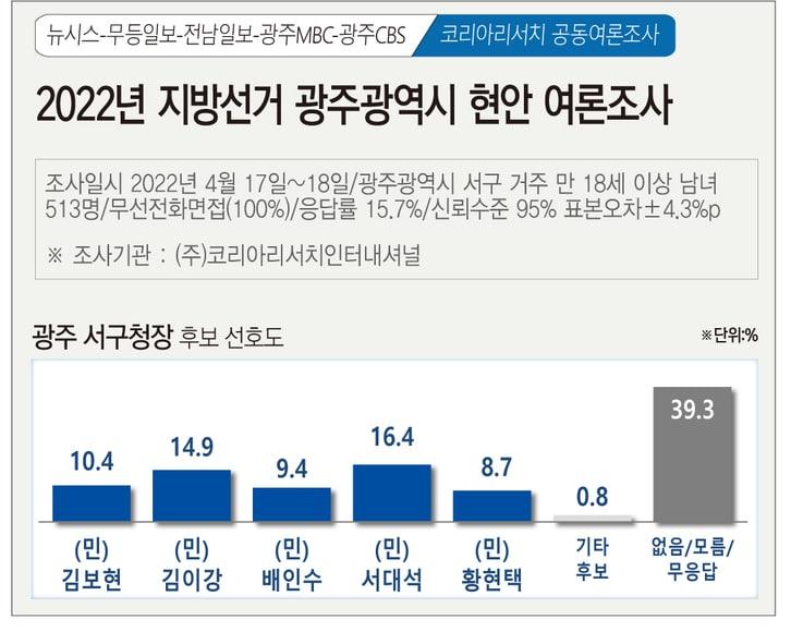 ±èÀ̰ ¼±¸Ã»Àå ¿¹ºñÈĺ¸ ¼±°Å´ëÃ¥º»ºÎÀÇ ±èÈ« ´ëº¯ÀÎÀº, ¿©·ÐÁ¶»ç ¼øÀ§¸¦ ¼Ó¿´´Ù´Â »ó´ë Èĺ¸ÀÇ ¼º¸í ¹ßÇ¥¿¡ ´ëÇØ, Áö³ 4¿ù 14ÀÏ ´õÆÑÆ® ±¤ÁÖÀü³² ÃëÀ纻ºÎ¿¡¼ ½Ç½ÃµÈ ±¤ÁÖ ¼±¸Ã»Àå Èĺ¸ ÀûÇÕµµ Á¶»ç¿¡¼ 1À§¸¦ ÇÏ¿´°í, 17~18ÀÏ ÄÚ¸®¾Æ¸®¼Ä¡ÀÎÅͳ»¼Å³Î¿¡¼ 5°³ ¾ð·Ð»ç°¡ °øµ¿ ÁøÇàÇÑ ¿©·ÐÁ¶»ç¿¡¼ ¼´ë¼® Çö ûÀåÀÌ ¿ÀÂ÷¹üÀ§ ³»¿¡¼ ¾Õ¼ 1À§¿´À¸³ª, 18ÀÏ ÄÆ¿ÀÇÁ¸¦ ´çÇÏ¿© 20ÀÏ ¿©·ÐÁ¶»ç ¹ßÇ¥ ´ç½Ã ¹ÎÁÖ´ç ÄÆ¿ÀÇÁ Á¦¿ÜÇÑ ¿¹ºñÈĺ¸ 4¸í Áß ±èÀ̰ ¿¹ºñºÎÈ£°¡ 1À§ÀÎ °ÍÀº ¸í¹éÇÑ »ç½ÇÀ̶ó°í ¸»Çß´Ù.