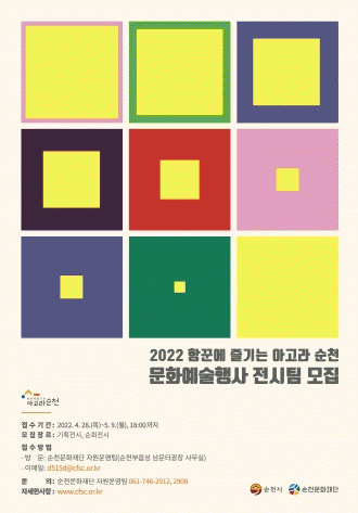 ¼±Á¤µÈ Àü½ÃÆÀÀº 6¿ùºÎÅÍ 11¿ù±îÁö ´Ù¾çÇÑ Àü½Ã·Î °ü¶÷°´À» ¸¸³¯ ¼ö ÀÖ´Ù. ±âȹÀü½ÃÆÀÀº ¼øÃµºÎ À¾¼º ³²¹®ÅÍ ±¤Àå ±âȹÀü½Ã½Ç¿¡¼ ¡®³ª¸¸ÀÇ Á¤¿ø¡¯À̶ó´Â ÁÖÁ¦·Î À帣º° Àü½Ã¸¦ ÆîÄ¡°Ô µÇ¸ç, ¼øÈ¸Àü½ÃÆÀÀº ¼øÃµ¸¸±¹°¡Á¤¿ø, ¹®ÈÀÇ °Å¸® µî ¼øÃµ½Ã °÷°÷¿¡¼ ¾Æ°í¶ó ¼øÃµ °ø¿¬ Çà»ç¿Í ÇÔ²² ½Ã¹Î°ú °ü±¤°´À» Á÷Á¢ ã¾Æ´Ù´Ï¸ç Àü½Ã¸¦ ÁøÇàÇÏ°Ô µÈ´Ù.