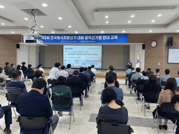 À̹ø ±³À°Àº Áö¹æ¼±°Å¸¦ ÇÑ ´Þ¿© ¾ÕµÎ°í °øÁ÷ÀÚÀÇ ¾öÁ¤ÇÑ ¼±°ÅÁ߸³ Áؼö¸¦ °¢ÀνÃ۰í ÁöÄÑ¾ß ÇÒ ÇàÀ§±âÁØÀ» ¾Ë·Á ¼±°Å¹ýÀ» À§¹ÝÀ» ¿¹¹æÇϱâ À§ÇØ ½Ç½ÃÇß´Ù.