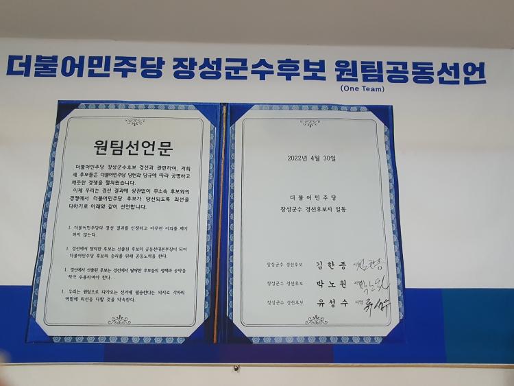 ¶ÇÇÑ, °øÃµ °á°ú ¹ßÇ¥¿¡ ¾Õ¼ ¿ÀÀü 9½Ã 30ºÐ°æ ´õºÒ¾î¹ÎÁÖ´ç À强Áö¿ªÀ§¿øÈ¸¿¡¼ ¼¼ È帰¡ ¸¸³ª ¿øÆÀ ¼±¾ð½ÄÀ» ÁøÇàÇÏ¿´´Ù.