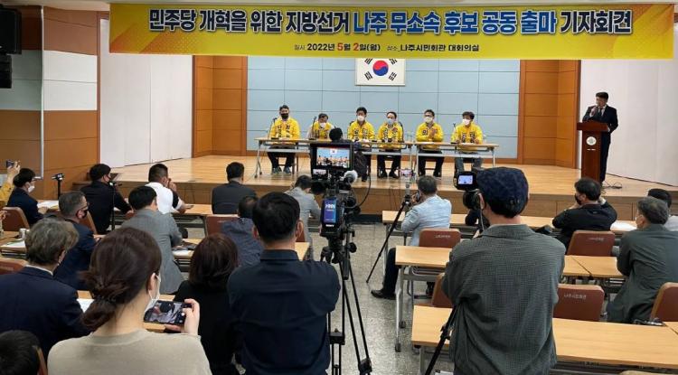 ¿À´Ã ±âÀÚȸ°ß¿¡ Âü¿©ÇÑ ¿¹ºñÈ帴 ÃÑ 6¸íÀ¸·Î °ÀÎ±Ô ³ªÁÖ½ÃÀå ¿¹ºñÈĺ¸¿Í ±è¼±¿ë µµÀÇ¿ø ¿¹ºñÈĺ¸, ±èÀåÁÖ, À̱¤¼®, ÀÓä¼ö, ȲÁ¤Çå ½ÃÀÇ¿ø ¿¹ºñÈ帴 ¡°¹ÎÁÖ´çÀ» °³ÇõÇϰí, Áö¿ª Á¤Ä¡¸¦ ¹Ù²Ù°Ú´Ù´Â ½Å³äÀ¸·Î ÇൿÇÏ´Â ¾ç½ÉÀÌ µÇ°Ú´Ù¡±°í ¼±¾ðÇÏ¿´´Ù.