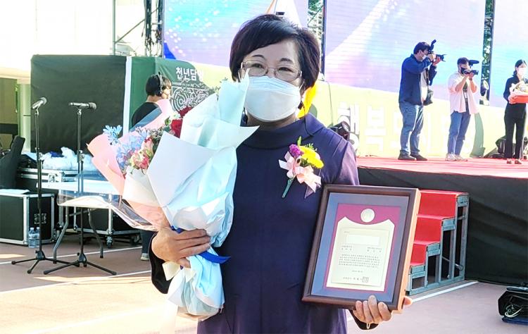 ´ã¾ç±º °ø¿¹¸íÀÎÀÎ ±è±ÝÁÖ ¾¾´Â 5¿ù 3ÀÏ ´ã¾ç Ãß¼º°æ±âÀå¿¡¼ ¿¸° ¡®Á¦43ȸ ´ã¾ç±º¹ÎÀÇ ³¯ ±â³ä½Ä¡¯¿¡¼ ±³À°¹®È ºÎ¹® ´ã¾ç±º¹Î Àå·Á»óÀ» ¼ö»óÇß´Ù.
