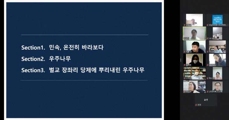 ¿Â¶óÀÎÀ¸·Î ÁøÇàµÈ À̹ø ÄÝ·ÎŰ¾öÀº È£³²´ë Çкλý°ú ¼®¡¤¹Ú»ç»ý ±×¸®°í ±³¼öÁøµéÀÌ Âü¿©ÇÑ °¡¿îµ¥ Çѳ²´ëÇб³ ¿À¼±¿µ ±³¼ö¸¦ ÃÊû, ¡®¹ú±³ ÀåÁ¸® ´çÁ¦¿¡ »Ñ¸®³»¸° ¿ìÁÖ³ª¹«–Àü³² ¸¶À»½Å¾Ó ÀÌÇØ¸¦ À§ÇÑ ±Û·ÎÄà ¸®ÅÍ·¯½Ã¡¯¶ó´Â ÁÖÁ¦·Î ¹Î¼ÓÇп¡¼ÀÇ Àι®ÇÐÀû ¸®ÅÍ·¯½Ã ÇÔ¾çÀ» À§ÇÑ ½Ã°£À» °¡Á³´Ù.