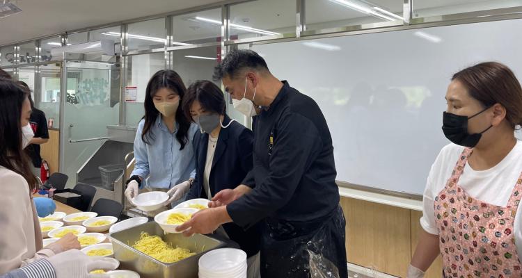 °°Àº ³¯ ¿ÀÀü 11½Ã¿¡´Â Çູµå¸²Á¾ÇÕ»çȸº¹Áö°üÀ» ¹æ¹®, ¿Ü½ÄÁ¶¸®Çаú À̹«Çü ±³¼ö¿Í ÇÏ¿ÀÃ÷ »çȸºÀ»ç´Ü ÇлýµéÀÌ Á÷Á¢ ÀÚÀå¸é°ú ±ñdz±â¸¦ ¸¸µé¾î, ±â°ü ÁÖº¯ ¾î¸£½Åµé¿¡°Ô ½Ä»ç¸¦ Á¦°øÇÏ´Â Àç´É³ª´® ±âºÎºÀ»ç Ȱµ¿À» ¹ú¿´´Ù.