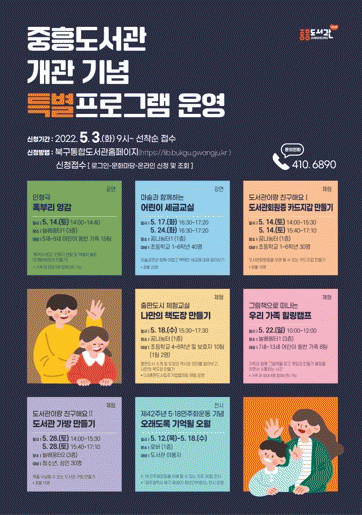 °¡Á· Âü¿© ÇÁ·Î±×·¥À¸·Î´Â 14ÀÏ¿¡ ÀÎÇü±Ø ¡®È¤ºÎ¸® ¿µ°¨¡¯ °ø¿¬°ú 18ÀÏ ¡®ÃâÆÇµµ¼ üÇè±³½Ç - ³ª¸¸ÀÇ Ã¥µµÀå ¸¸µé±â¡¯, 22ÀÏ¿¡´Â ±×¸²Ã¥À» ÀÐ°í °ÔÀÓ°ú ¸¸µé±â Ȱµ¿À» ÇÏ¸ç °¡Á·°ú ¼ÒÅëÇÏ´Â ¡®±×¸²Ã¥À¸·Î ¶°³ª´Â ¿ì¸® °¡Á· Èú¸µÄ·ÇÁ¡¯°¡ ÁغñµÅ ÀÖ´Ù.