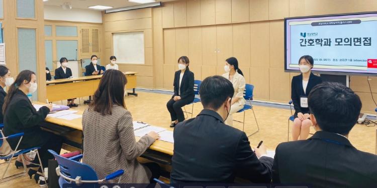 À̳¯ ¡®¸ðÀǸéÁ¢¡¯Àº ¸éÁ¢½ºÅ³ ÇÔ¾çÀ» ÅëÇÑ Ãë¾÷°æÀï·Â °È¸¦ À§ÇÑ ¸ñÀûÀ¸·Î ½ÃÇàµÇ¾úÀ¸¸ç, ÇлýµéÀº »çÀü¿¡ ½Ç½ÃÇÑ ¡®AI ¸éÁ¢¡¯ °á°úÇ¥¸¦ ¹Ì¸® ÁöÂüÇϰí ÀÚ±â¼Ò°³, ÀåÁ¡, Ư±â, ÀÚ°Ý »çÇ× ¼Ò°³, Àå·¡ Æ÷ºÎ, ÇØ´ç º´¿ø Áö¿ø ÀÌÀ¯ µî ä¿ë °ü·Ã Áú¹®¿¡ ´ëÇÑ ´äº¯À» ü°èÀûÀ¸·Î ÁغñÇØ ¸ðÀǸéÁ¢¿¡ ÀÓÇß´Ù.