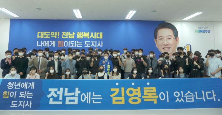 ÇÑÆí, ±è È帴 Áö³ 14ÀÏ ¼øÃµ¿¡ ¸¶·ÃµÈ ¼±°Å»ç¹«¼Ò¿¡¼ Àü³²Áö¿ª ´ëÇлý ¹× û³â 100¿©¸íÀÌ Âü¼®ÇÑ °¡¿îµ¥ ¡®Ã»³â, Àü³²ÀÇ ¹Ì·¡¸¦ ¸»ÇÏ´Ù¡¯¸¦ ÁÖÁ¦·Î ¡®Ã»³â 100ÀÎ °£´ãȸ¡¯¸¦ ¿°í Àü³² û³âÁ¤Ã¥ µî¿¡ ´ëÇØ ¼ÒÅëÇß´Ù.